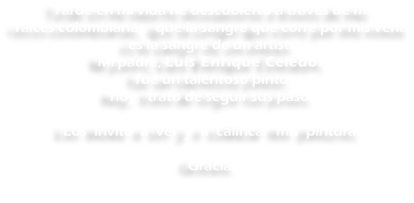 HOME / INICIO GALLERY / GALERIA ABSTRACT & IMPRESSIONISM  BIO/ BIOGRAFÍA PORTRAIT / RETRATOS GREAT MASTERS REPRODUCTIONS GREAT MASTERS MINIATURES MY DAD / MI PAPA SHOWS AND MORE CONTACT / CONTACTO