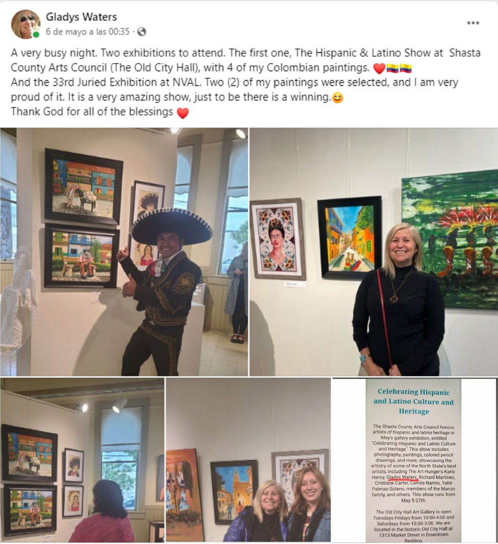 To Main Street Gallery in Weaverville, thank you Elizabeth, Briggit, Melanie, Martha and all of the wonderful ladies who made the opening of my art show so incredible. Thank you Trinity County Arts Council and the wonderful community of Weaverville for giving the artists such a great opportunity to show our work.