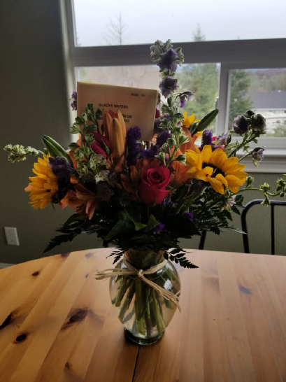 y a su novio y a su mamá, a mis vecinos Debby y Lyn por venir de Redding,